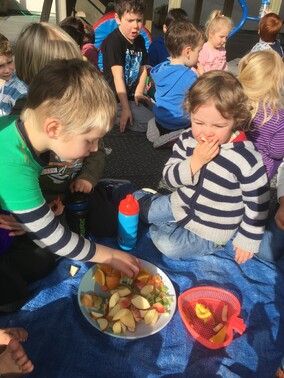 Children bring a piece of fruit to add to the fruit platters prepared for sharing at this time.